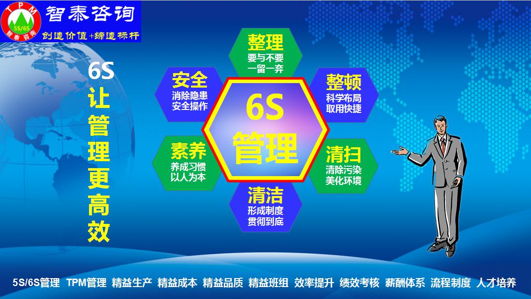 深圳智泰下屬6S咨詢公司在國內(nèi)對(duì)不同行業(yè)推進(jìn)6S管理,98%以上取得非常滿意的效果,智泰專業(yè)團(tuán)隊(duì)三天為企業(yè)打造成功6~8個(gè)標(biāo)桿車間。