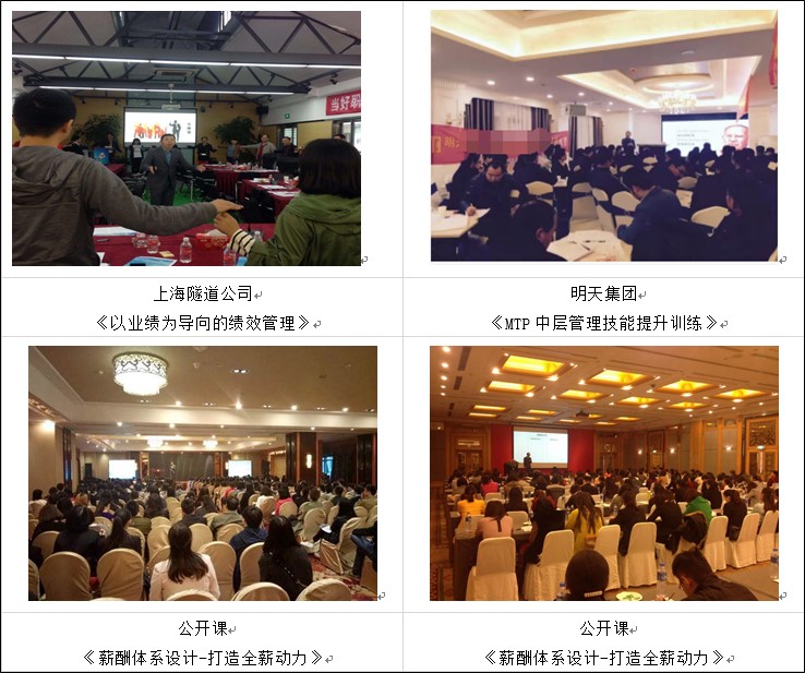 ? 為上海隧道、銳奇控股、百勁機(jī)械等企業(yè)提供《績效管理》培訓(xùn),共10期。