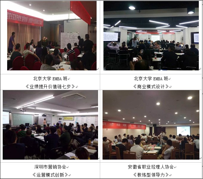 →2017年5受邀北京大學(xué)寵物醫(yī)院EVMBA寵物產(chǎn)業(yè)鏈院長班,為學(xué)員講授《頂層設(shè)計和企業(yè)戰(zhàn)略創(chuàng)新》、《寵物醫(yī)院業(yè)績提升價值鏈技術(shù)》、《門店業(yè)績目標(biāo)達(dá)成教練》課程,學(xué)員反饋有高度理論,實(shí)操工具落地,系統(tǒng)性實(shí)戰(zhàn)型強(qiáng),培訓(xùn)形式輕松,受到學(xué)員高度認(rèn)可!