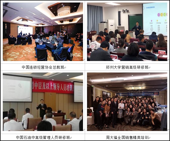 公開課:中國加盟連鎖協(xié)會、中國職業(yè)經(jīng)理人協(xié)會、珠海金合種子孵化中心、領(lǐng)道咨詢、虹歌咨詢(服裝行業(yè))、新疆暢泰、銀川工商業(yè)聯(lián)合會、海南中小企業(yè)服務(wù)中心、鄭州企研商學(xué)院等