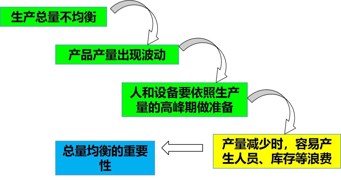 對(duì)于周期性的大幅波動(dòng),則需要重新進(jìn)行總量均衡配置生產(chǎn)要素,而進(jìn)行產(chǎn)品總量均衡的周期由產(chǎn)品特點(diǎn)及工廠管理能力而定:產(chǎn)品需求量波動(dòng)頻繁則調(diào)整也應(yīng)頻繁進(jìn)行,工廠管理能力強(qiáng)則可以在需要的時(shí)候及時(shí)調(diào)整;如果不強(qiáng)則只能允許浪費(fèi)的存在或供不應(yīng)求。