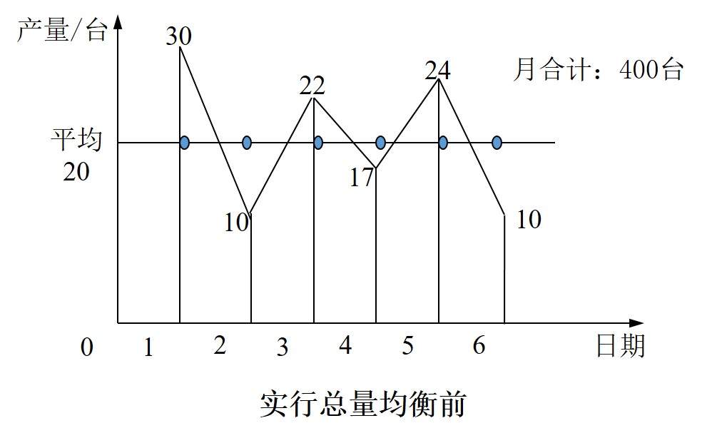如果采用總量均衡的辦法,是日產(chǎn)量保持一致,即每天生產(chǎn)20臺(tái),則可以按這個(gè)產(chǎn)量準(zhǔn)備人員以及生產(chǎn)要素。這樣,總產(chǎn)量沒有減少,人員以及生產(chǎn)要素卻可以減少1/3,成本也就隨之降低。