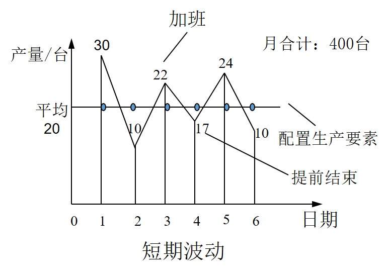 實(shí)施總量均衡后,雖然每天按照相同的數(shù)量準(zhǔn)備人員及生產(chǎn)要素,但需求仍有可能產(chǎn)生波動(dòng),可分為短期波動(dòng)和長(zhǎng)期波動(dòng)兩種情況。