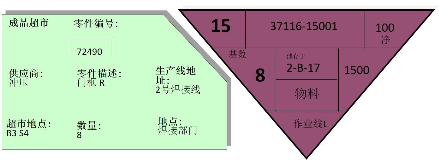4.按看板補(bǔ)充下工序零件,同時(shí)取出在制品超市中零件看板(看板交換)