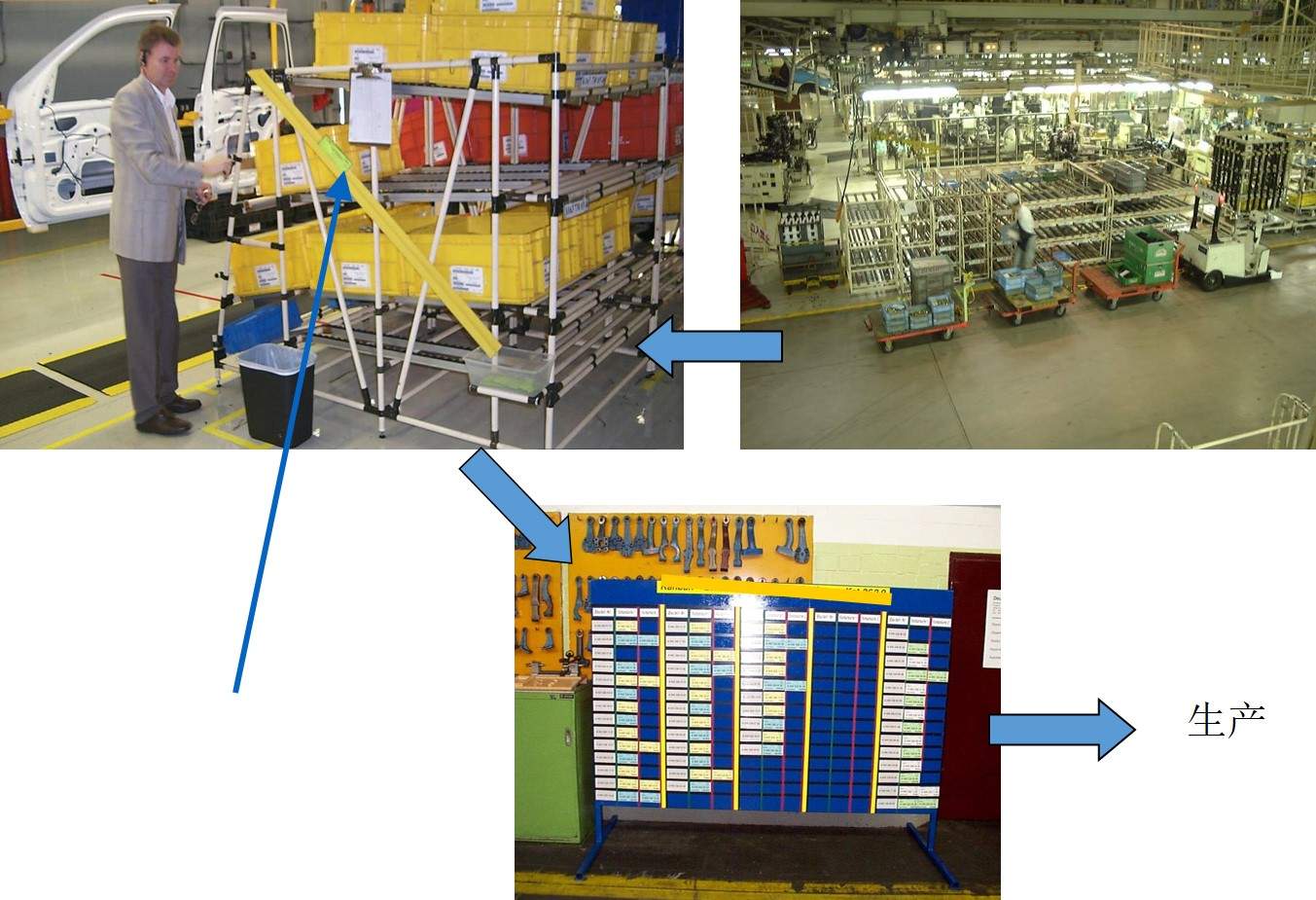 6.配送人員從超市補(bǔ)充材料到生產(chǎn)線,同時(shí)取出超市零件容器中的看板(看板交換.)