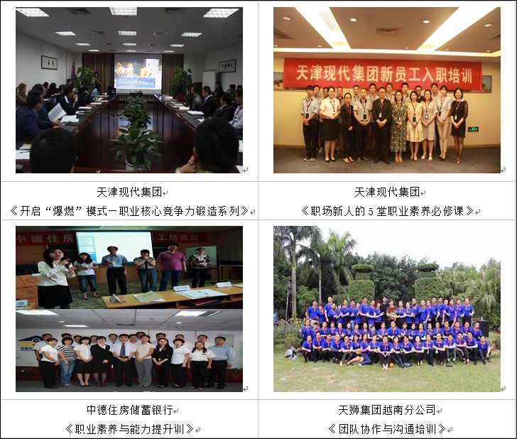 ▲曾為天津現(xiàn)代集團新員工、商業(yè)地產(chǎn)/物業(yè)事業(yè)部員工講授《職業(yè)素養(yǎng)》《不同的崗位共同的責(zé)任—職業(yè)素養(yǎng)提升訓(xùn)》等課程,累計6期