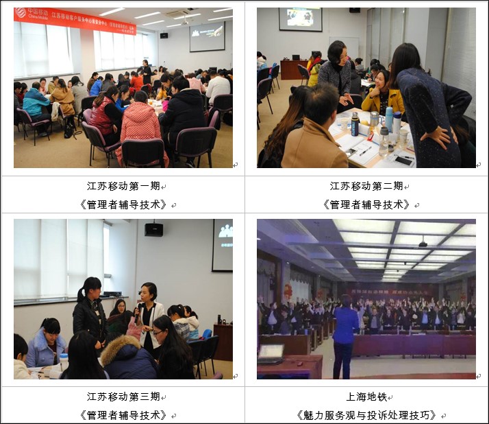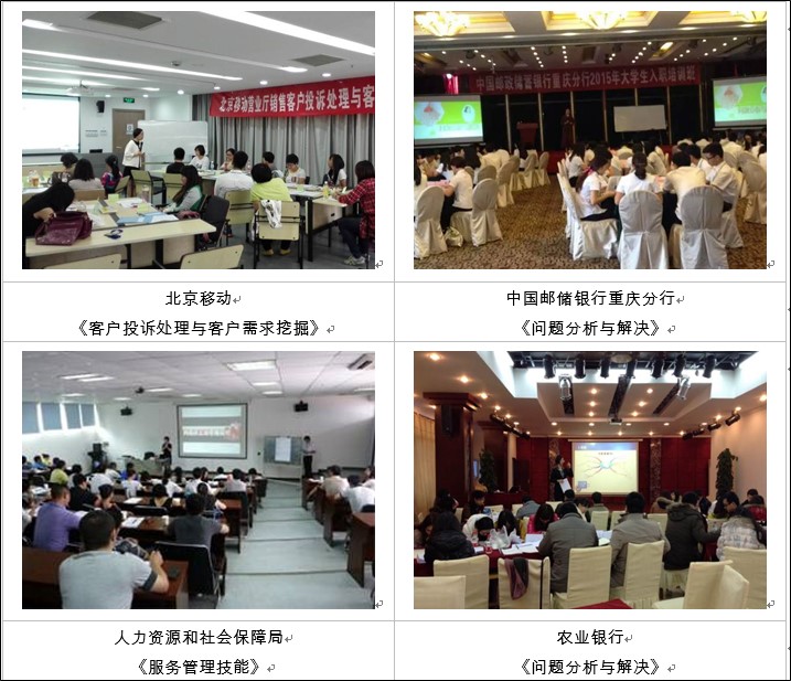 曾受邀兄弟單位及省級醫(yī)院、電力系統(tǒng)做《打造營業(yè)廳服務(wù)藍圖》及《客戶投訴處理培訓(xùn)》、《問題分析與解決》,得到業(yè)界的高度認可,好評如潮