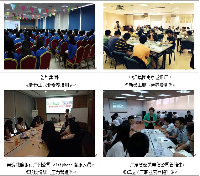 大型上市公司:碧桂園集團(tuán)、創(chuàng)維集團(tuán)、順豐速遞、歐派家居、得潤電子、宜信集團(tuán)、友誼集團(tuán)新員工職業(yè)化課程20期;