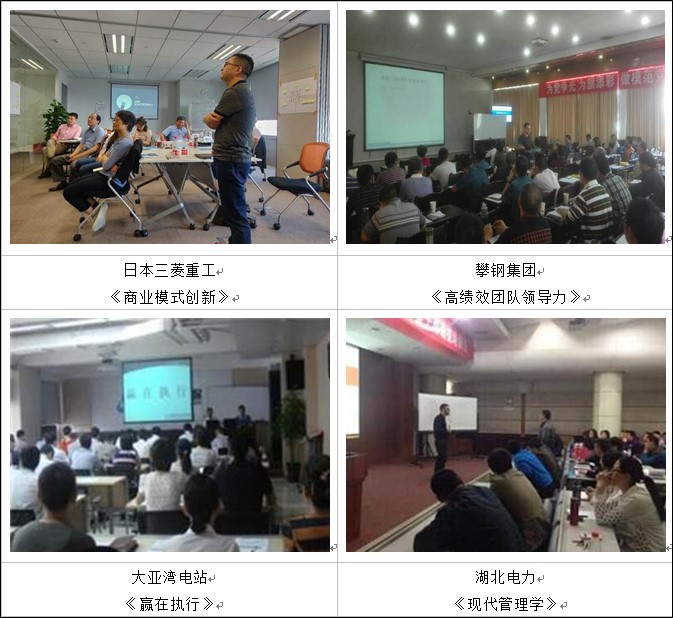 第二大類是企業(yè)內(nèi)訓(xùn)課,已服務(wù)過的一者有外企,如北京美資企業(yè)巴威公司、天津日資企業(yè)大冢公司及上海日資企業(yè)三菱重工和日立集團、青島韓資企業(yè)泰光公司、珠海德資企業(yè)TDK等等。再者有國企,如移動、聯(lián)通、電信,國家電網(wǎng),中國人壽保險、中國太平洋保險,中石油,中國農(nóng)業(yè)銀行、中國建設(shè)銀行,重慶、貴陽等多地農(nóng)商行,內(nèi)蒙古東勝煤礦、鄂爾多斯羊絨集團、雪花啤酒、五糧液集團等等。第三有民企,如復(fù)興、海爾、蒙牛、綠城、報喜鳥、林氏木業(yè)、奧克斯、良品鋪子等等;
